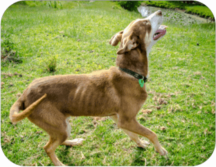 Swollen Belly. In life-threatening cases, dogs may exhibit a swollen belly due to fluid buildup in the abdomen.